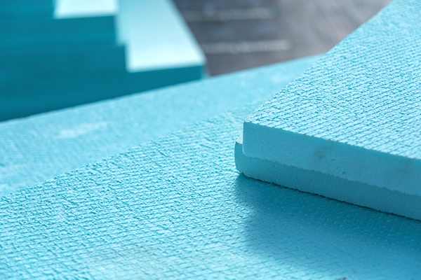 La composición es la misma, pero el poliestireno extruido es más denso e impermeable, por lo que es el único material aislante que puede mojarse. Se utiliza en forma de láminas para aislar techos y paredes. Si se enciende, se autoextingue, pero puede desprender humos tóxicos.